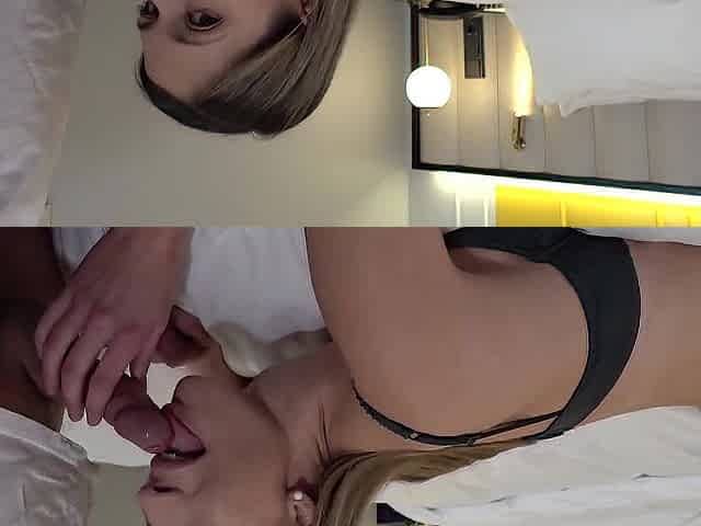 blonde hottie gets her shaved pussy filled with cum