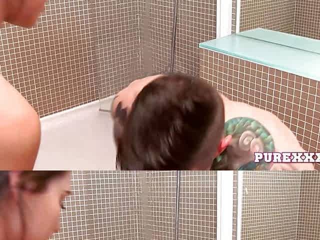 Hottie gets washed and fucked