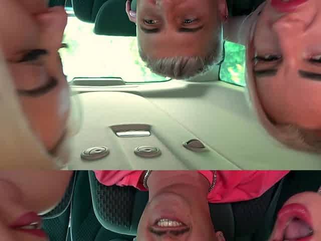 Tina Valentina and another hottie share a dick in the car