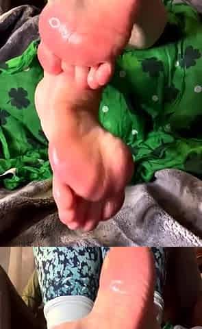 Colombian hottie gives footjob with toes fellated and dildo railing her tight pussy, all in a XXX video.