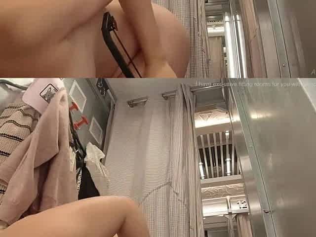 A sexy hottie tries on clothing on her bare body and inserts a booty-plug into her booty.
