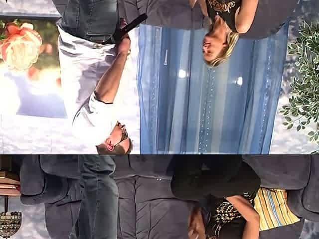 spying toying housewife Ann on leather sofa
