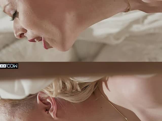Passionate lovemaking on the bed with cute blonde Sahara Skye