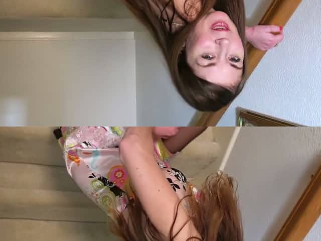 Wild sex on the stairs with hot red haired seductress Lacy Lennon