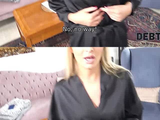 DEBT4k. Bank employee happily stretches sexually excited golden-haired debtor on the sofa