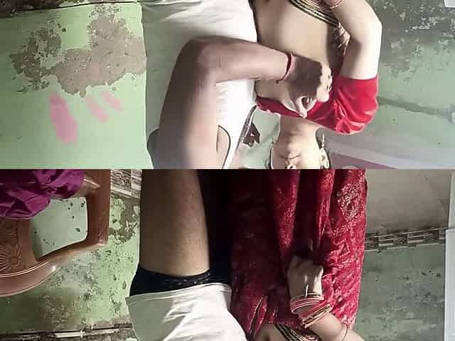 Desi Indian bhabhi Tannu in a crimson outfit enjoys a wild fuck session during the rainy season