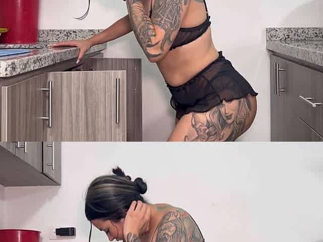 Housewife Booty Drilled In The Kitchen, Tit Screw And Creampie In Her Large Butt - Italian
