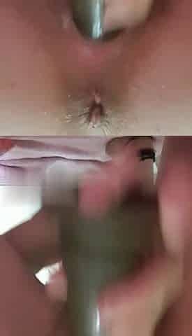 Kinky golden-haired darling, is using a huge, ebony cone as a sex toy, to stretch her butt