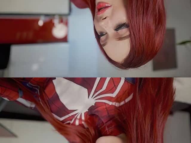 Slender, red haired model with large, firm bazookas is toying her cunt in front of the camera