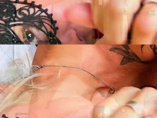 Slim platinum-blonde Cecelia Taylor teases her tight pussy with a big toy.