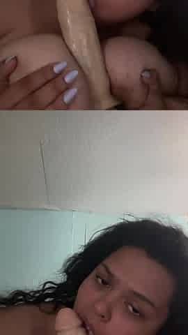 Large tit Latin babe sucks off big toy