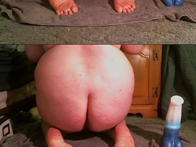 He plays with my ass with huge dildos and ends up cumming