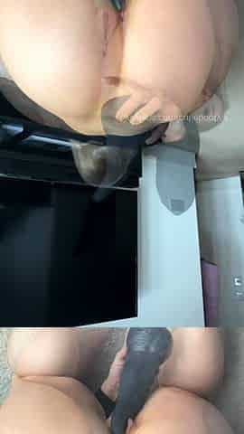 Alone at home and masturbating with big toys