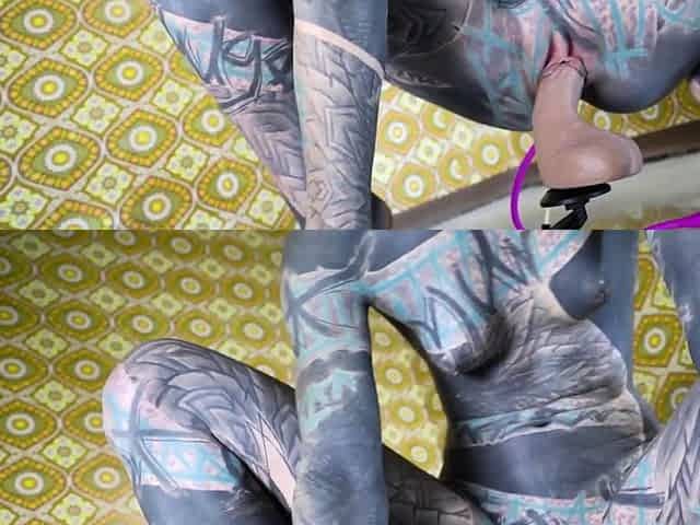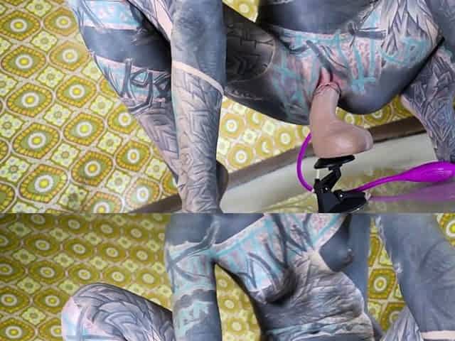 Tattooed model Anuskatzz masturbating with a big toy