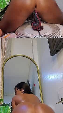 Black Domme Maserati XXX Rubs Her Giant Titties & Rides A Large Toy!