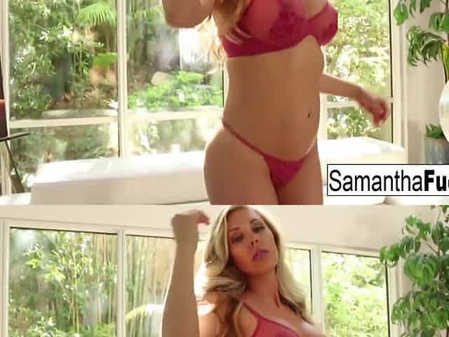 Samantha Saint : Stacked hottie Samantha fills her pussy with a large toy