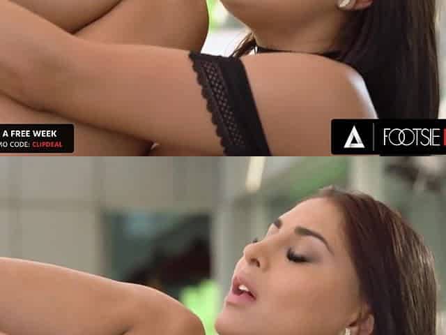 Small teen Avril Sun's kinky afternoon foot fetish nylon sex adventure