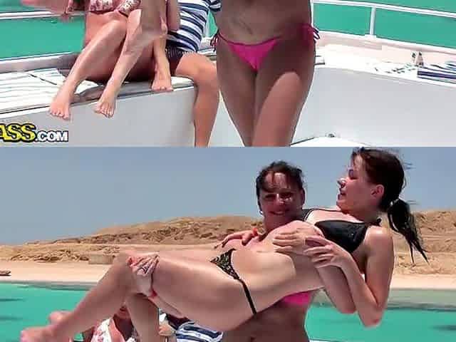 Skinny girl gets nailed in the boat in a MMF threesome