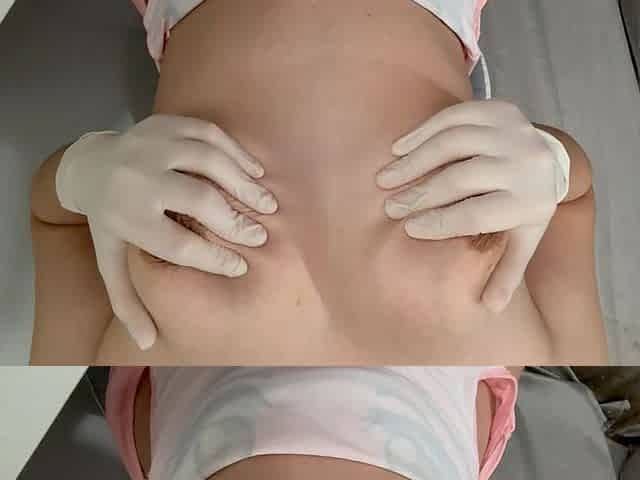 Indian Step Sister Plays with Her Breasts in Medical Gloves