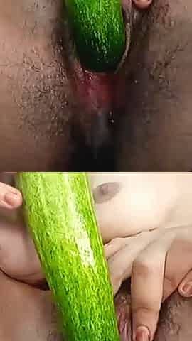 Teen college girl masturbating using cucumber