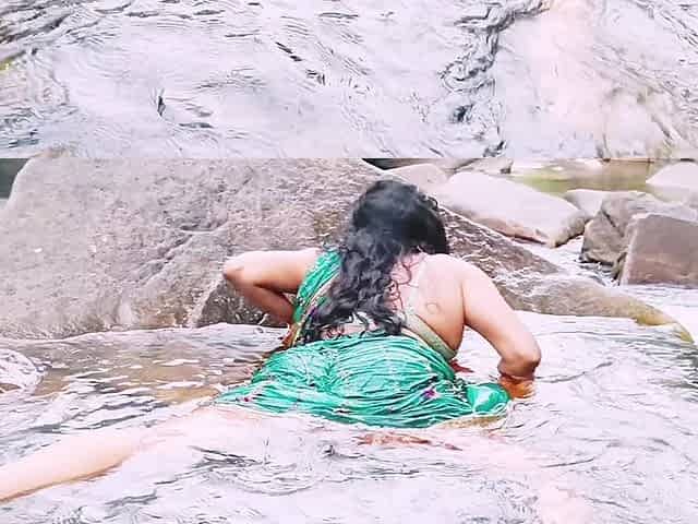 Silk Aunty Outdoor Bath Sex in Waterfall Telugu Dirty Talks.
