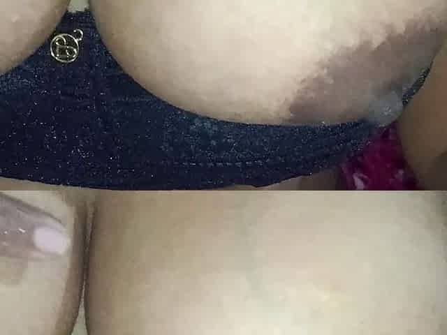 Desi sexy girl enjoys self sex by opening her bra and pinching her big boobs nipples.