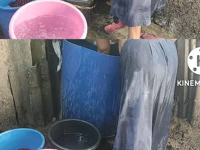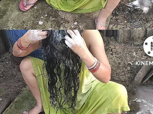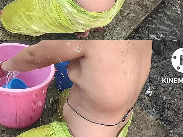 Anita Yadav bathing in indian style