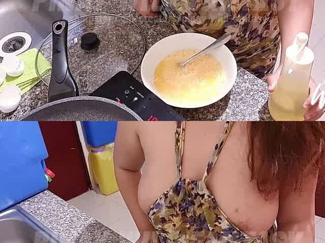 Indian Desi Bhabhi Showing her big Boobs while Cooking Break
