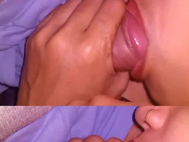 Indian stepsister Amayamori in gloves gives a hot BJ and swallows my load