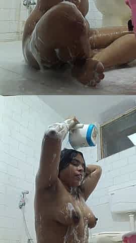 Real Hot Indian Housewife Taking Shower Fingering Pussy