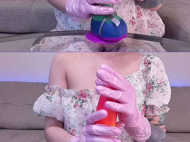 Jerk Off Instruction On A Toy While Wearing Medical Gloves