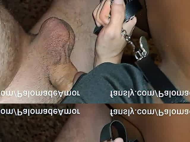 Blond gf giving that ebony dick footjob