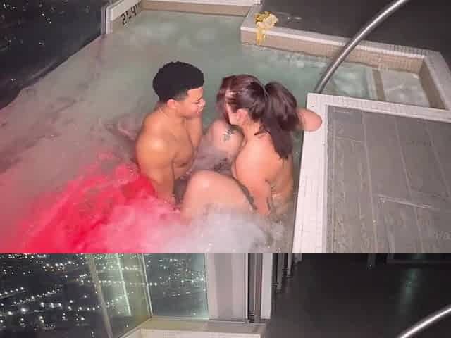 Black Stud Showers Lya Pink with Cum While Her Cuck Watches