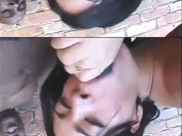 Gorgeous white whore sucks a huge black dick before she gets ass fucked
