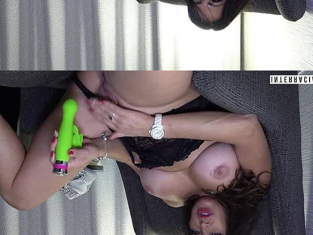 Hot brunette with nice ass and big boobs dildoing her holes