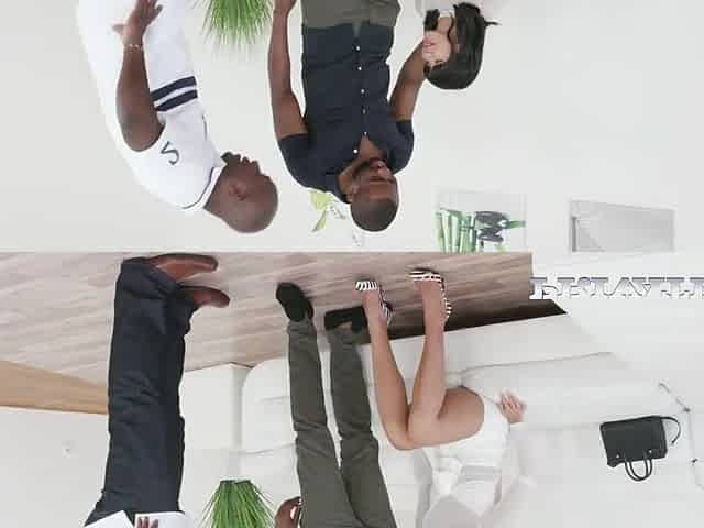Pretty Interracial Groupsex On The Couch With Brunette Babe