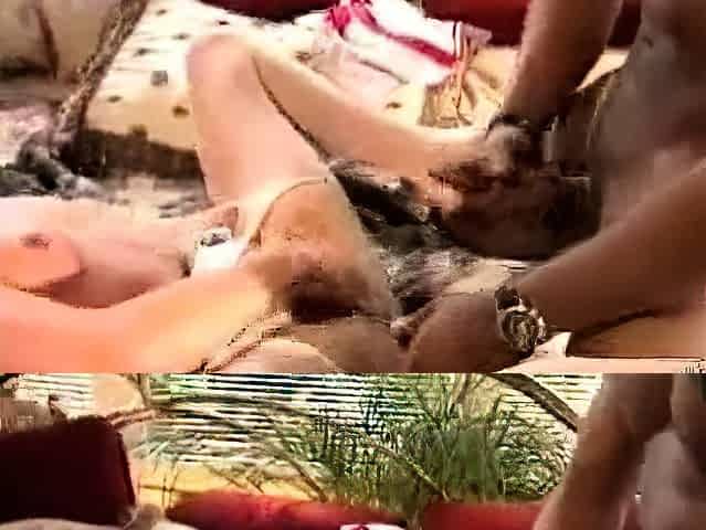 2 bawdy doxies DPed and drinking piddle in team fuck