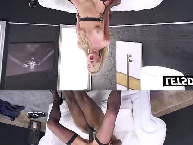 Gorgeous blonde doll is enjoying interracial penetration so much