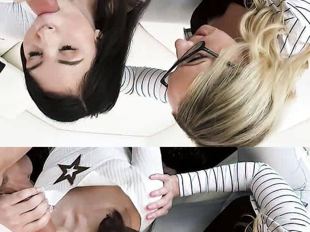 Rachael Cavalli and Emerald Loves in hot scene with natural tits