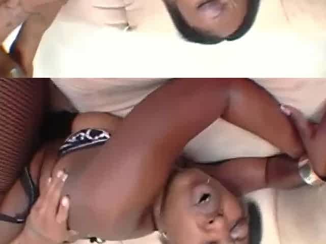 Beautiful ebony in white threesome: Blowjob, Anal Interracial Porn
