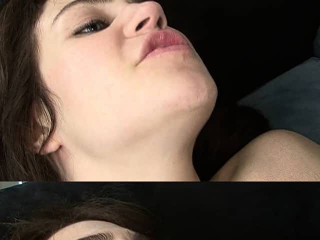 Cute brunette begs for two huge cocks at once, right after she fucks herself