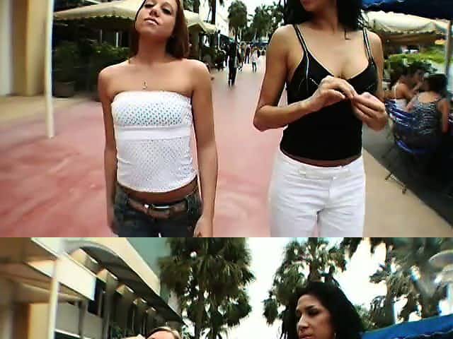 Sexy Interracial babes start with each other and then tag team his lucky cock