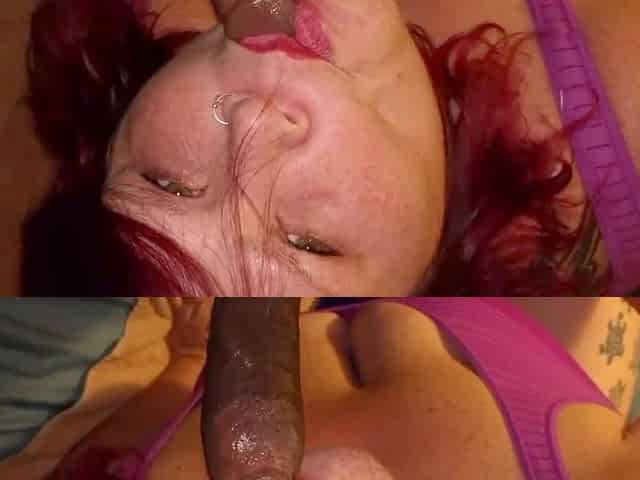 Redhead Becky gets her fiery hair splattered in interracial fuck fest