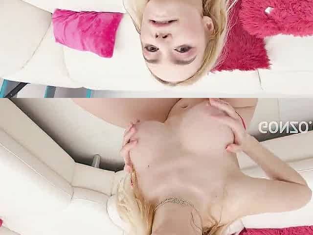 Hot blonde gives blowjob before double penetration