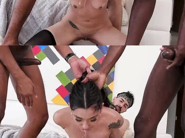 Meyzi Black, Brazilian Exotic Cutie, Fucked By 4 Big Cocks
