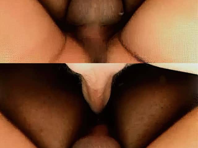 Sweet black girl has two white studs roughly drilling her pussy and her anal hole