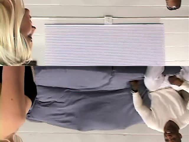 She spends her lunchtime eating and getting fucked by two black dudes