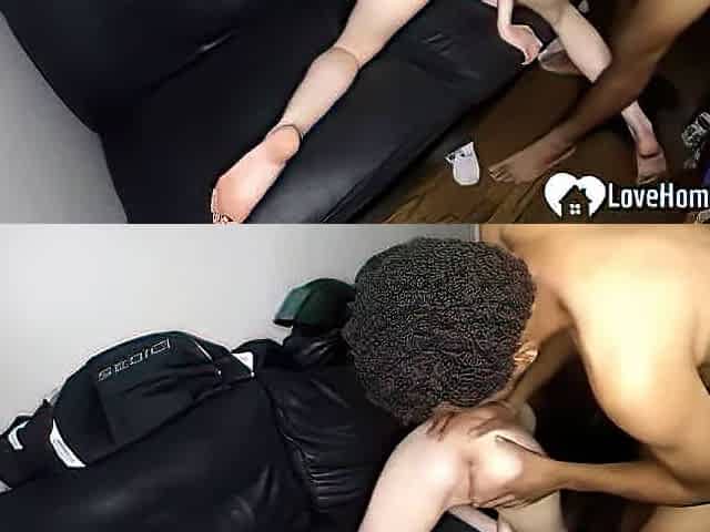 Slender white girl interracial sofa sex