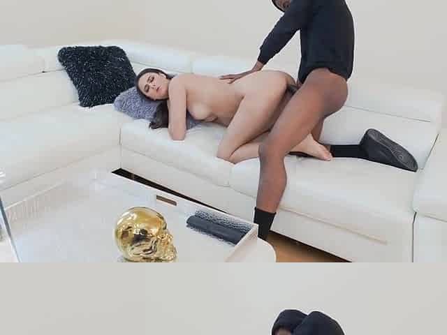 Sexy Bitch Sucks On A Huge Black Cock Then Rides It On The Sofa