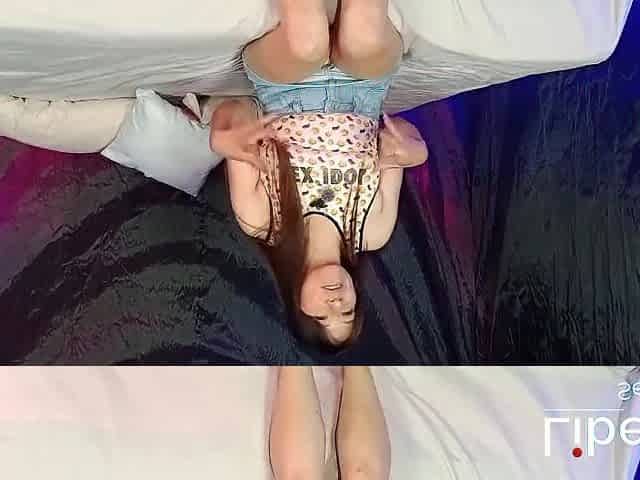 Brunette girl rubbing her pussy all day lying here for the porn casting